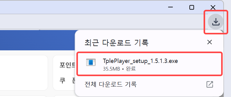 2. °¢ ºê¶ó¿ìÀú ¿ìÃø »ó´ÜÀÇ ´Ù¿î·Îµå ¾ÆÀÌÄÜÀ» Ŭ¸¯ÇÏ¿© ¹ÞÀº ÆÄÀÏÀ» È®ÀÎÇÕ´Ï´Ù.